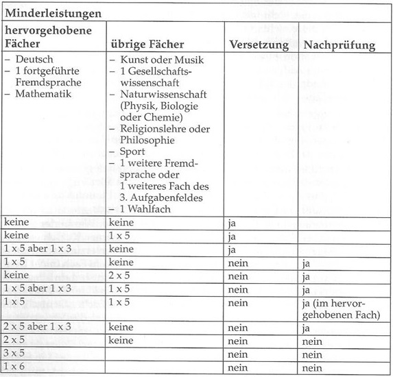 Versetzungsregeln und Beispiele: