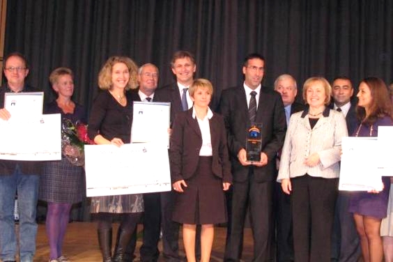 Vertreter der Alevitischen Gemeinde, der Geschwister-Scholl-Gesamtschule und des Sozialdienstes Katholischer Frauen nahmen im Hansesaal die Preise entgegen, die das Multikulturelle Forum ausgelobt hatte. (Foto: Hirsch)