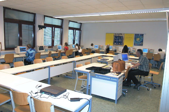 - 2 Computerräume mit ca. 60 Schüler-Arbeitsplätzen, zusätzlich gibt es Laptopwagen, Beamer und Whiteboard in den Oberstufenräumen swie PC-Arbeitsplätze in der Schülerbibliothek
