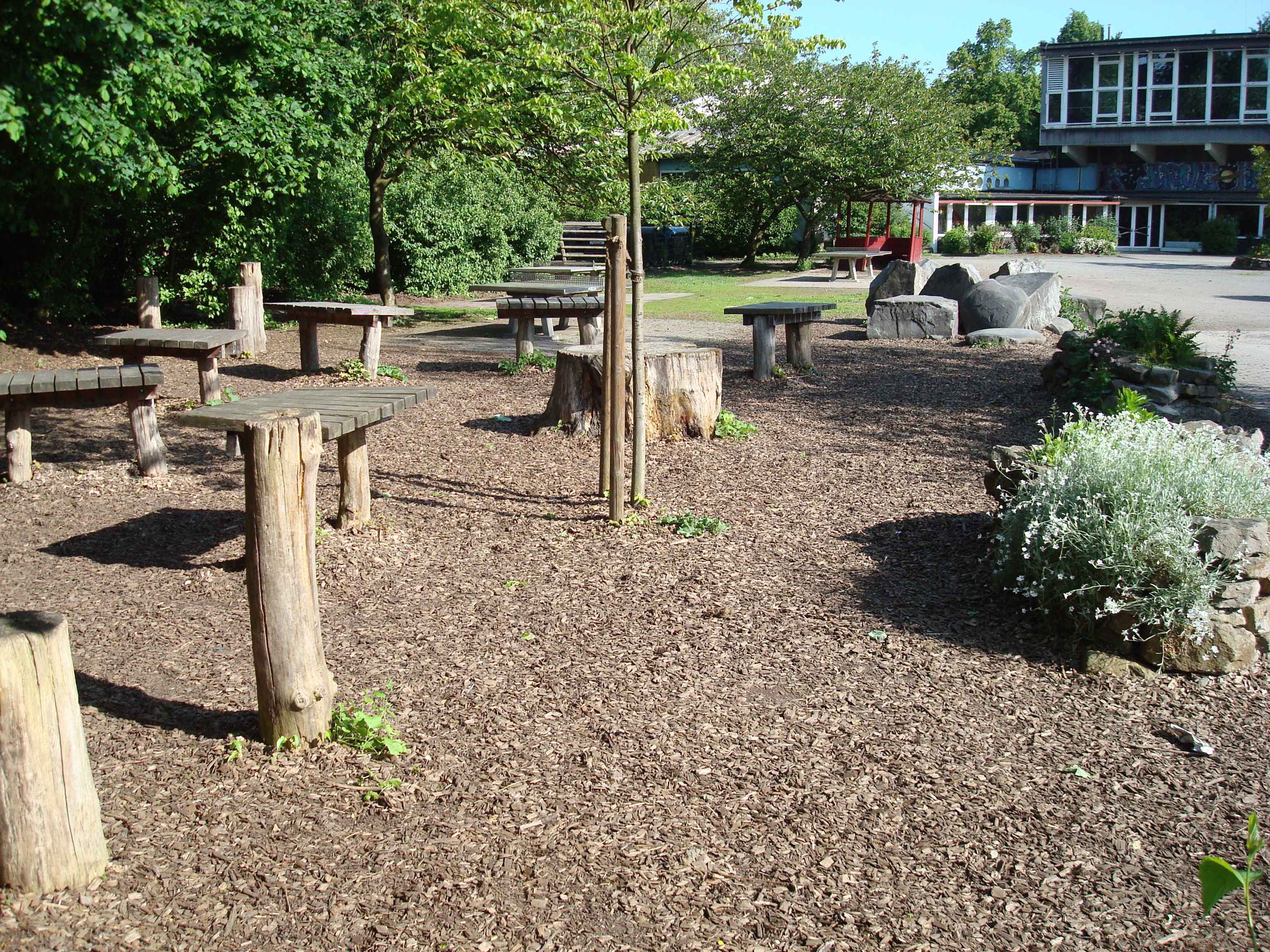 - Ein eigener Bereich des Schulhofes ist - vor allem im Sommer - als Freiluftklassenzimmer nutzbar.