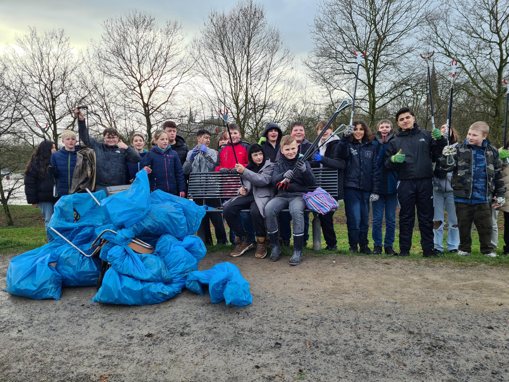 Die Klasse 8b hat erfolgreich am Leezenpatt, Wallgang und im Lippeauenpark hinter der Sparkasse Müll gesammelt. Die Schüler*innen waren vor allem beeindruckt, wie viele vorbeikommende Menschen die Aktion mit positiver Rückmeldung kommentiert haben!