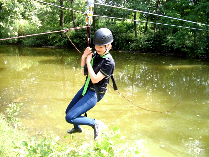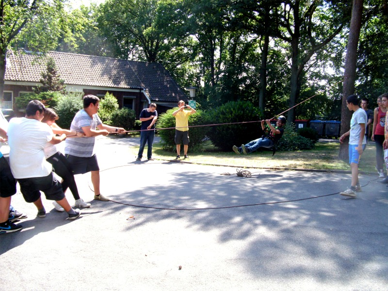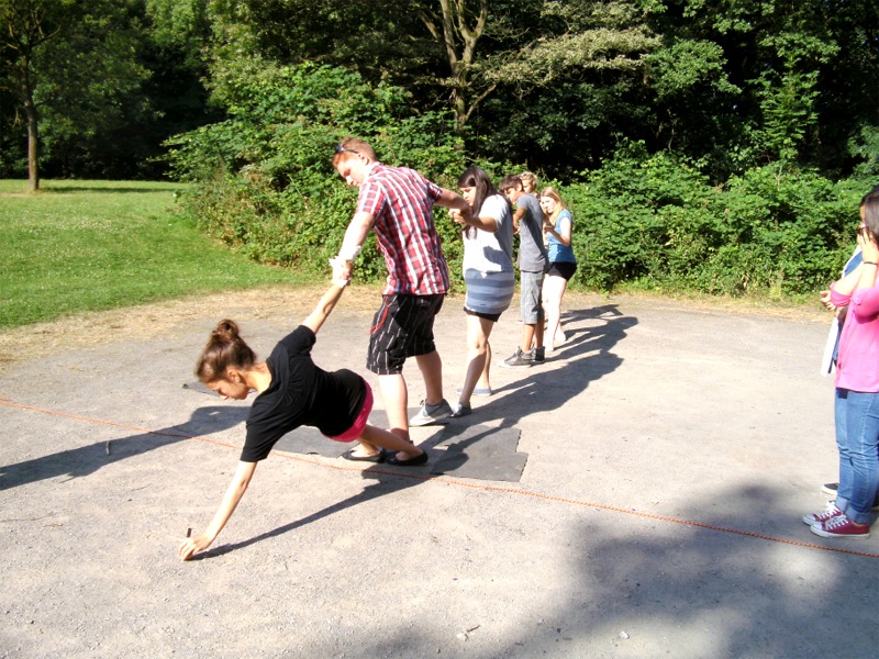 Für die Neuntklässler der Geschwister-Scholl-Gesamtschule ging es in der letzten Schulwoche dieses Schuljahres nicht um Vokabeln lernen oder Formeln umstellen, sondern im Rahmen eines sog. Berufsorientierungscamps um Übungen zur Vorbereitung auf die Arbeitswelt. Dazu wurde das Gelände rund um die Jugendherberge „Cappenberger See“, wo auch das Mittagessen eingenommen wurde, genutzt. Fünf Moderatoren von „360 Grad – outdoor education team“ stellten den fünf Parallelklassen jeweils Aufgaben, die sie nur lösen konnten, wenn sie gemeinsam Lösungsstrategien überlegten und diskutierten, die Stärken der einzelnen Mitschüler und Mitschülerinnen mit einbezogen und schließlich in der Gemeinschaft das Lösungskonzept in die Tat umsetzen. Dabei wurden Tugenden wie Kooperationsfähigkeit, Teamfähigkeit, Geduld, Kompromissbereitschaft und Zuverlässigkeit trainiert, also Eigenschaften, die in der heutigen Arbeitswelt immer wichtiger werden. Mal ging es darum, einen „Elektrozaun“ oder ein „Spinnennetz“ gemeinsam zu überwinden, mal musste ein imaginärer Fluss mit Hilfe von wenigen Teppichfliesen überquert werden, oder man musste sich nach hinten fallen lassen und dabei darauf vertrauen, von den Mitschülern aufgefangen zu werden. Höhepunkt für alle Teilnehmer/-innen war sicherlich der Bau einer Seilbrücke über einen Seitenarm des Cappenberger Sees mit anschließender Überquerung des Gewässers an einer Seilrolle. Das Berufsorientierungscamp wurde durch Fördergelder der Stiftung „Zukunft fördern. Vertiefte Berufsorientierung gestalten“, eine Initiative zur Unterstützung der Berufs- und Studienorientierung aller allgemeinbildenden weiterführenden Schulen Nordrhein-Westfalens, ermöglicht. Finanziert wird die Initiative durch die Regionaldirektion Nordrhein-Westfalen der Bundesagentur für Arbeit und das nordrhein-westfälische Ministerium für Schule und Weiterbildung. Finanziell unterstützt wird das Projekt durch das Ministerium für Arbeit, Integration und Soziales des Landes Nordrhein-Westfalen und den Europäischen Sozialfonds. Mehr zur Berufswahlvorbereitung an der GSG Lünen erfahren Sie hier auf unserer Homepage. |