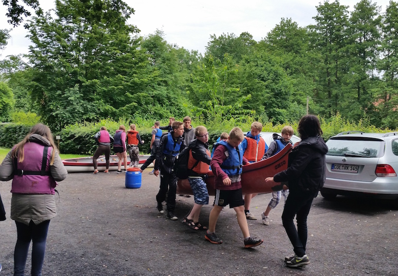 Die Schülerinnen und Schüler der Klasse 7c haben zum Schuljahresabschluss einen zweitägigen Übernachtungsausflug in die Nähe von Lüdinghausen gemacht. Neben einer Wanderung zur Burg Vischering standen eine Kanutour auf der Stever, Abende am Lagerfeuer und Zeltübernachtungen an. Sehen Sie hier einige Impressionen der Fahrt: