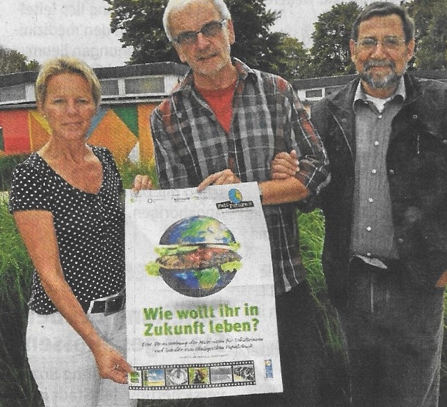 Die didaktische Leiterin der Geschwister- Schall-Gesamtschule, Susanne Oberreuter (li.), Lehrer und ein Koordinator der Liga, Ulrich Scholz (MJ und Chef der Liga, Ulrich Weber (re.) organisieren die Veranstaltung mit. RN—FOTO MEINA "Als zukünftiger Bewerber um den Titel einer Fairtrade-Schule „ist es nur folgerichtig, dass wir bei verschiedenen Projekten mit Schwerpunkt Nachhaltigkeit mitmachen“, erklärt die didaktische Leiterin der Schule, Susanne Oberreuter, die Teilnahme. Etwa 1000 Schüler werden bei vier Veranstaltungen zwischen 8.15 und 14.25 Uhr informiert. Auch Lehrer anderer Schulen können vorbeischauen, um zu prüfen, ob die ökologische Bildungskampagne auch für ihre Schule interessant ist. Jennifer Meina Die Liga wird in den nächsten Monaten sechs weitere Veranstaltungen zum Thema „Der Ökologische Fußabdruck — wie zukunftsfähig ist unser Lebensstil?“ im Raum Lünen durchführen.