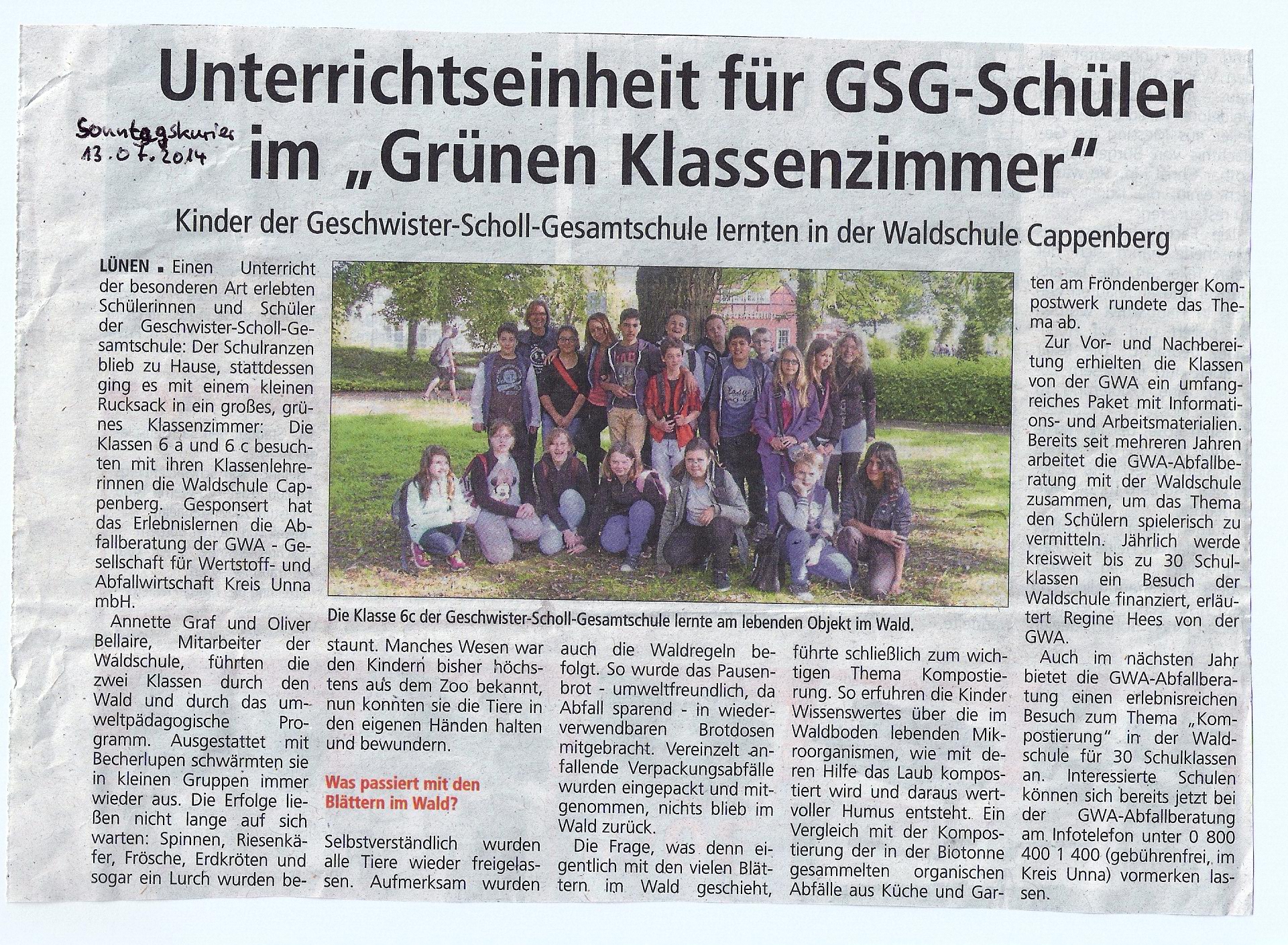 (Sonntagskurier) Kinder der Geschwister-Scholl-Gesamtschule lernen in der Waldschule Cappenberg