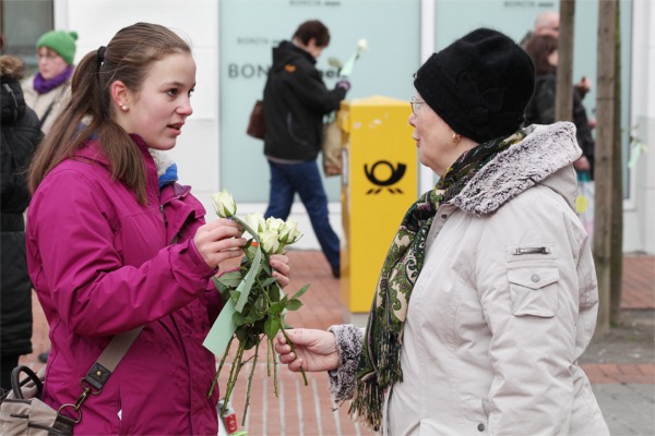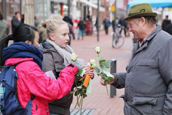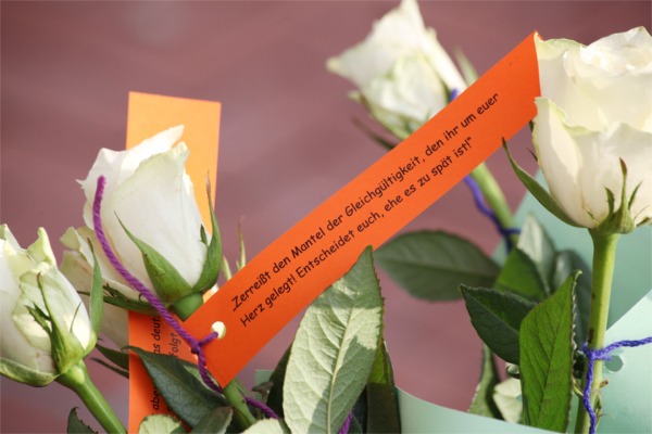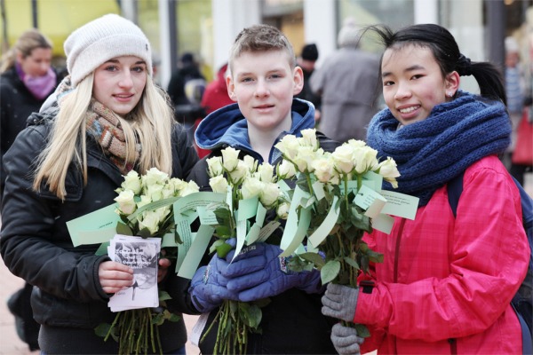 (Lüner Anzeiger) Weiße Rosen verschenkten Schüler der Geschwister-Scholl-Gesamtschule in der Fußgängerzone.