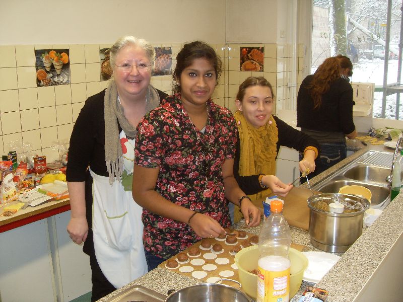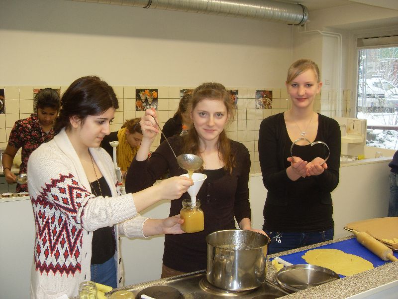 Die Backaktion setzte damit das Projekt „Jung lernt von Alt“ fort. Im Sommer führte die Geschwister-Scholl-Gesamtschule das Projekt „Obst und Früchte konservieren“ mit Landfrauen, dem Altenpflegedienst Eschert und Seniorinnen durch.