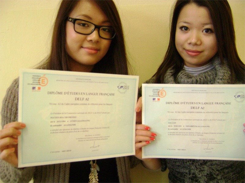 Félicitations! Lila Lin und Hoa Nguyen aus dem 11. Jahrgang haben erfolgreich die DELF-Prüfung bestanden.